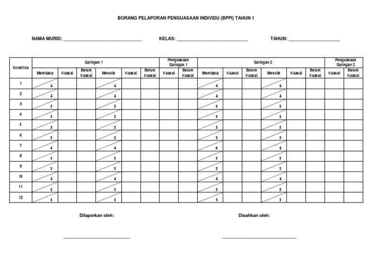 Doc Borang Pelaporan Penguasaan Individu Bppi Numerasi Nama Murid Tahun Kelas Zakwan Danial Academia Edu