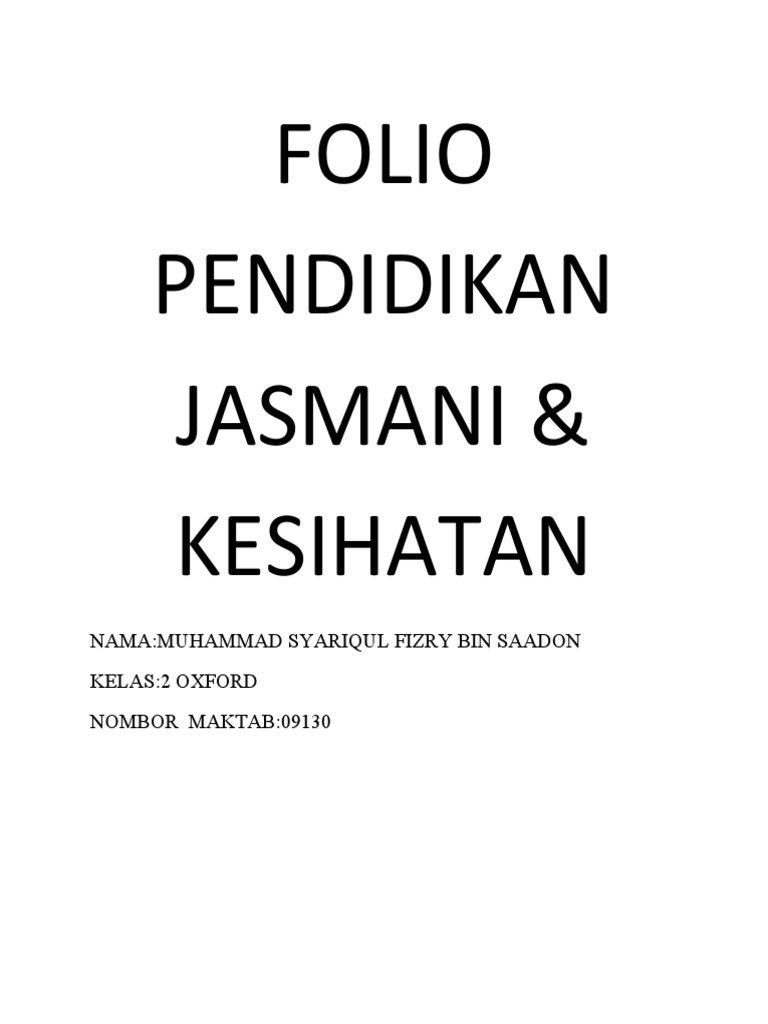 Folio Pendidikan Jasmani Dan Kesihatan Tingkatan 4