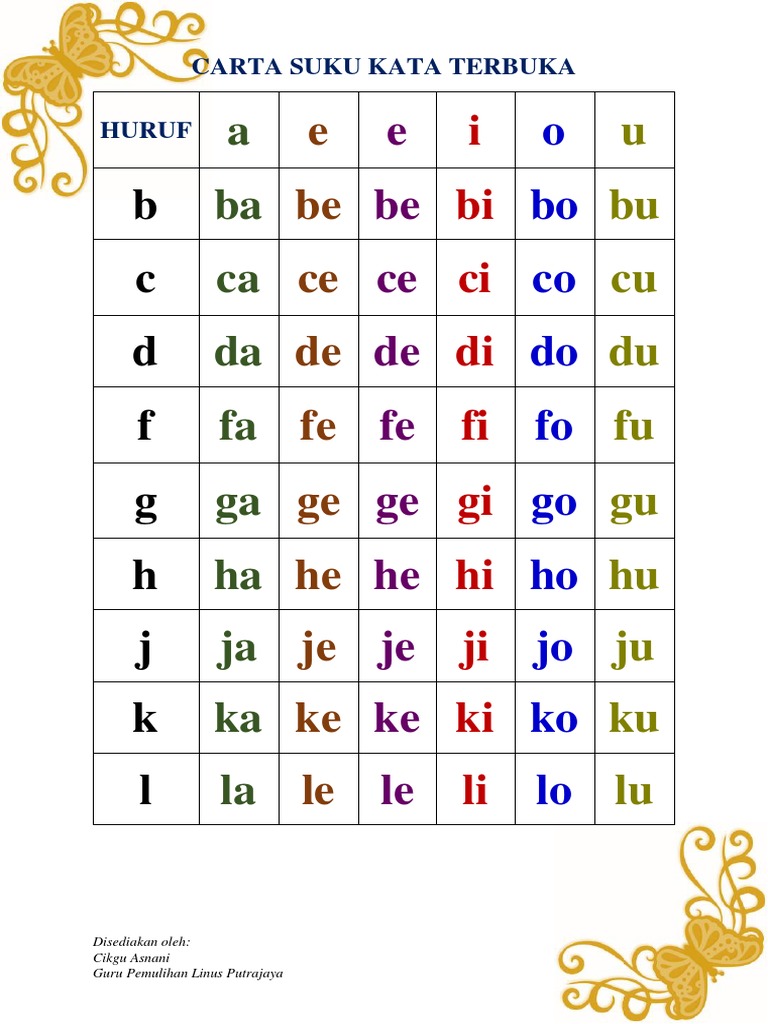Carta Suku Kata Kv Di 2020 Suku Kata Latihan