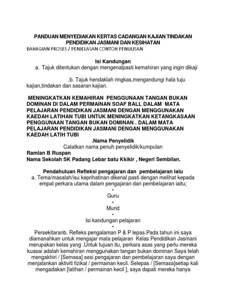 Panduan Menyediakan Kertas Cadangan Kajian Tindakan Pendidikan Jasmani Dan Kesihatan