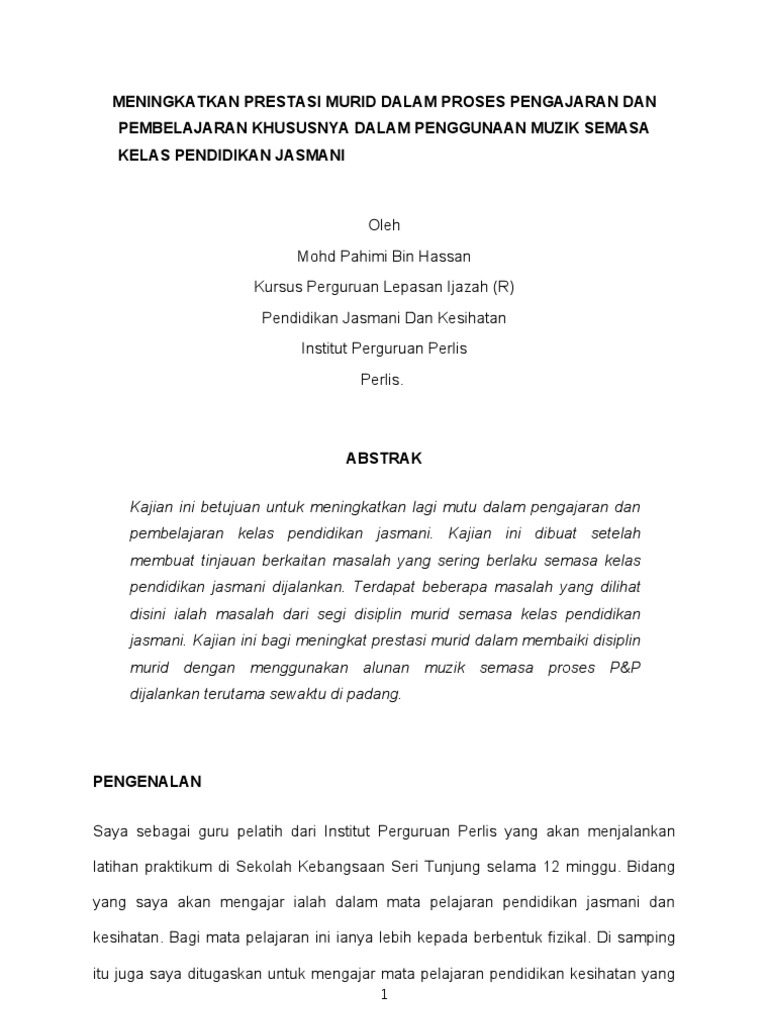 Contoh Tajuk Kajian Tindakan Pendidikan Jasmani