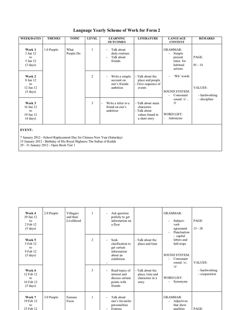 Language Yearly Scheme Of Work For Form 2 Symbols Semiotics