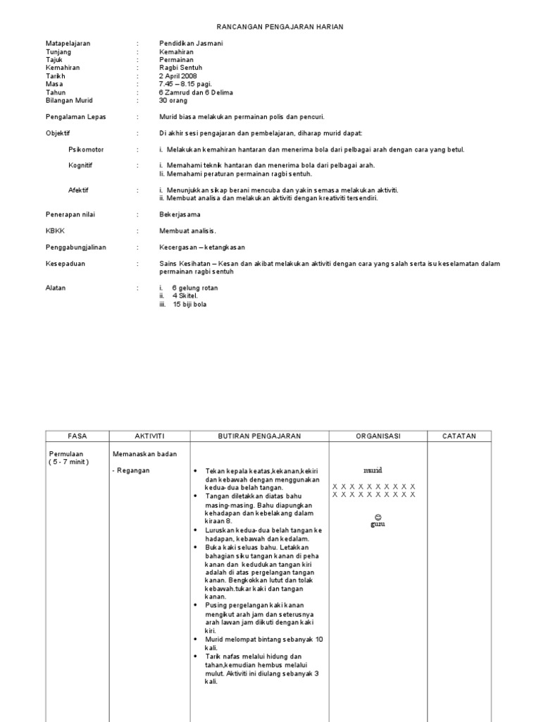 Rph Pendidikan Jasmani 5 Ragbi Sentuh