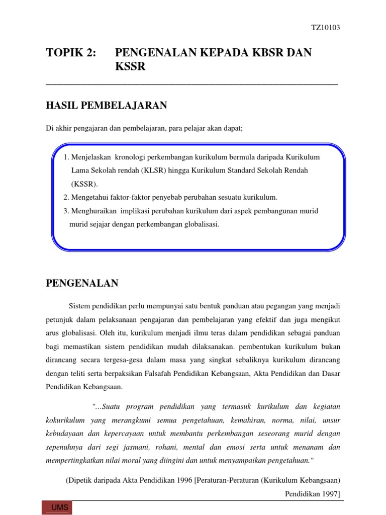 Topik 2 Pengenalan Kepada Kbsr Dan Kssr 2