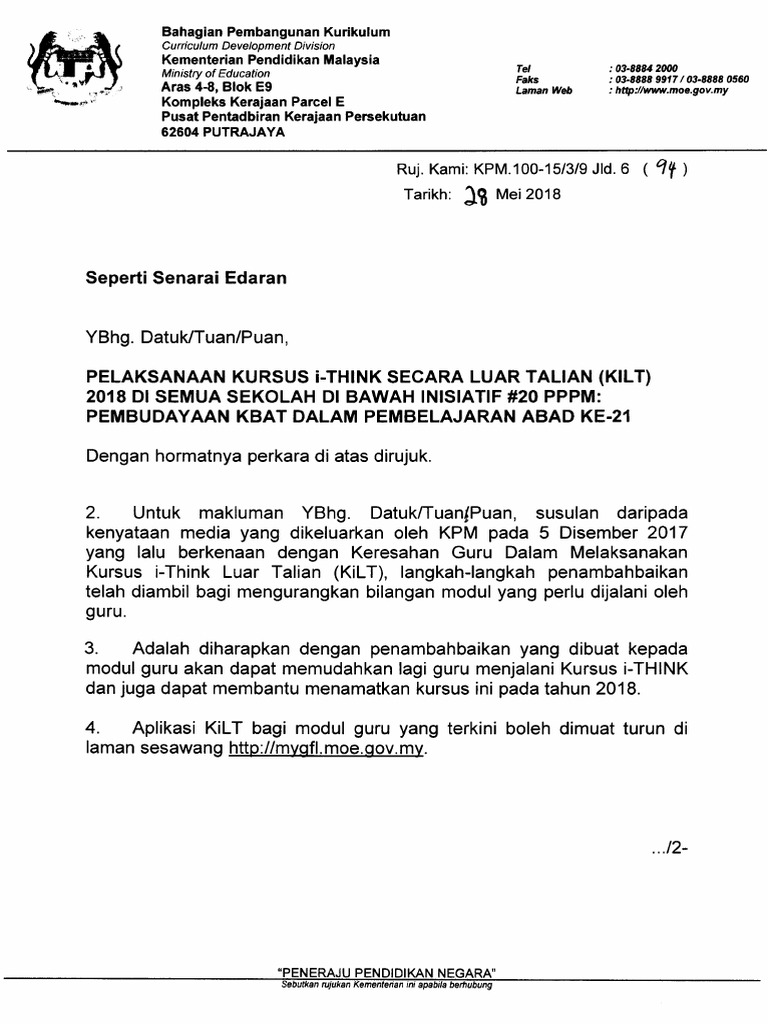 Pelaksanaan Kursus I Think Secara Luar Talian Kilt 2017 Infomalay12 Blogspot Com Info Malay