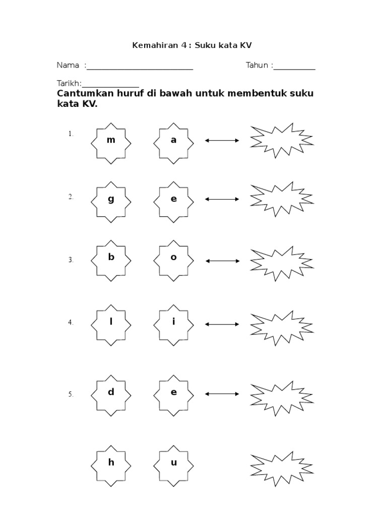 Lembaran Kerja Kemahiran 4 Suku Kata Terbuka Kv Doc