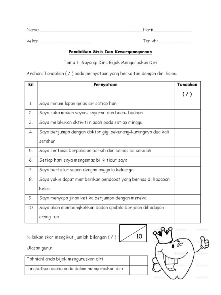 Lembaran Kerja Psk Tahun 4 Cara Menguruskan Diri