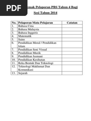 Senarai Semak Pelaporan Pbs Tahun 4 Bagi Sesi Tahun 2014