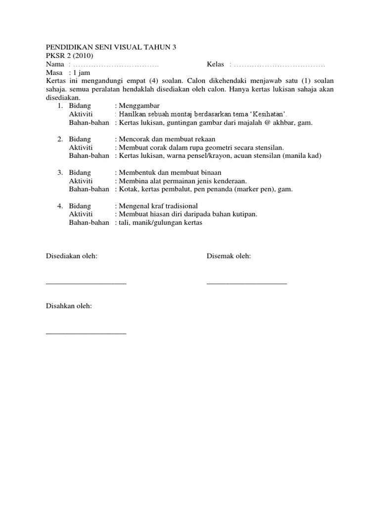 Soalan Dunia Seni Visual Tahun 3 Kssr