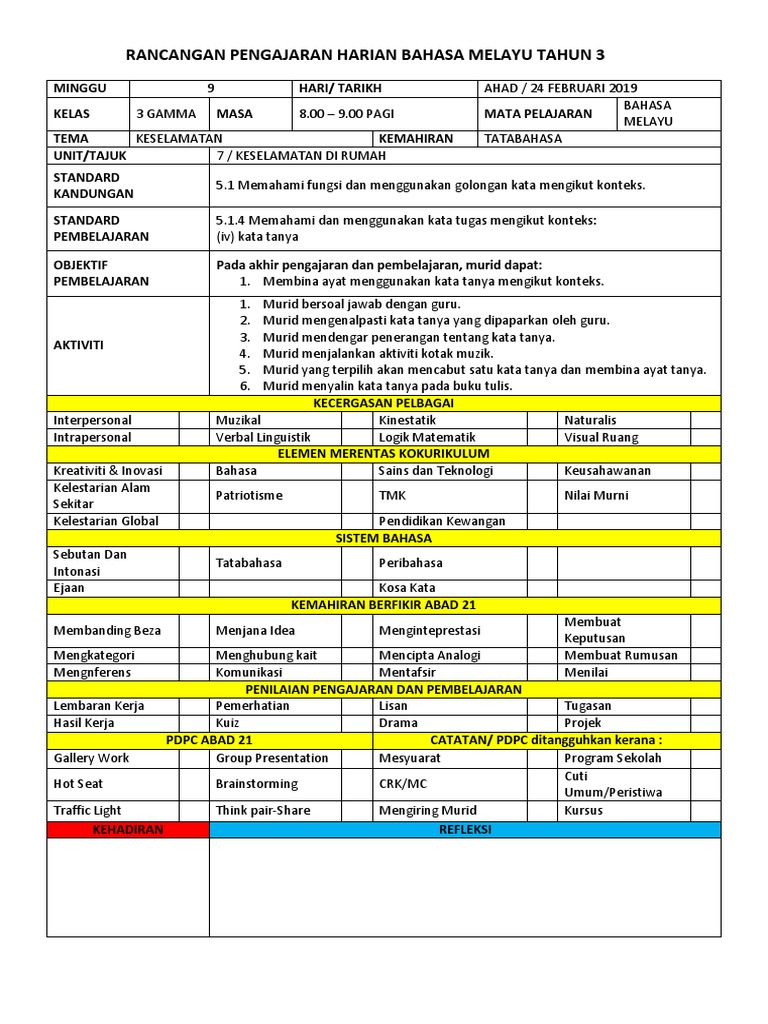 Rancangan Pengajaran Harian Kssr Bahasa Melayu Tahun 3