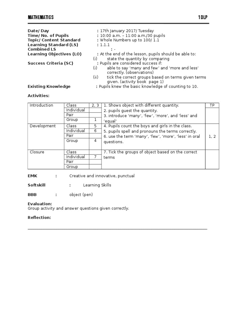Lesson Lesson Plan Mathematics Year 2 Dlp Download Ebook Bike
