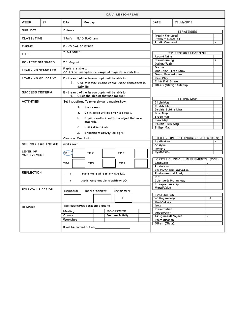 Contoh Rph Sains Dlp Lesson Plan Cognitive Science