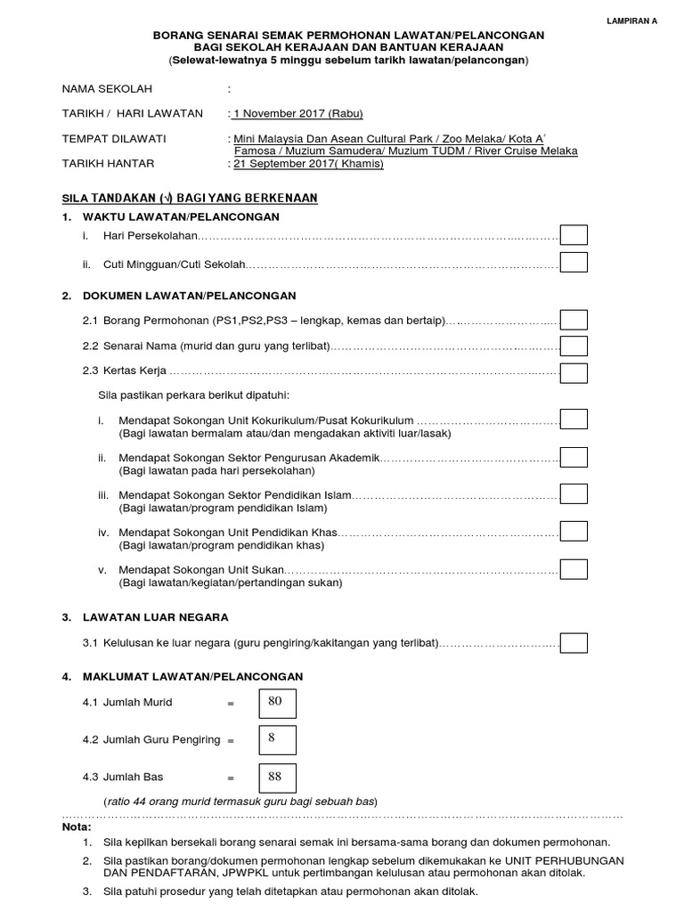 Senarai Semak Permohonan Kebenaran Lawatan Murid