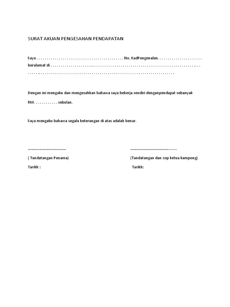 Surat Akuan Pengesahan Pendapatan Pdf